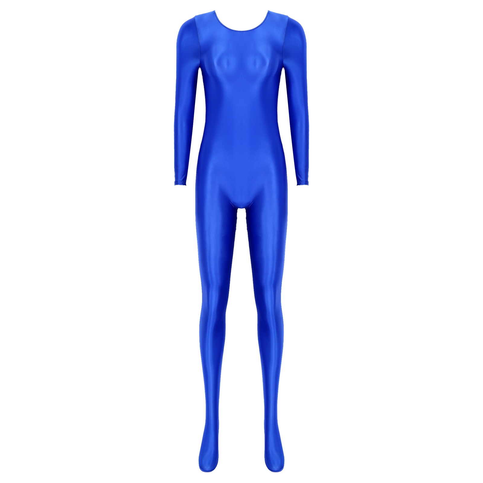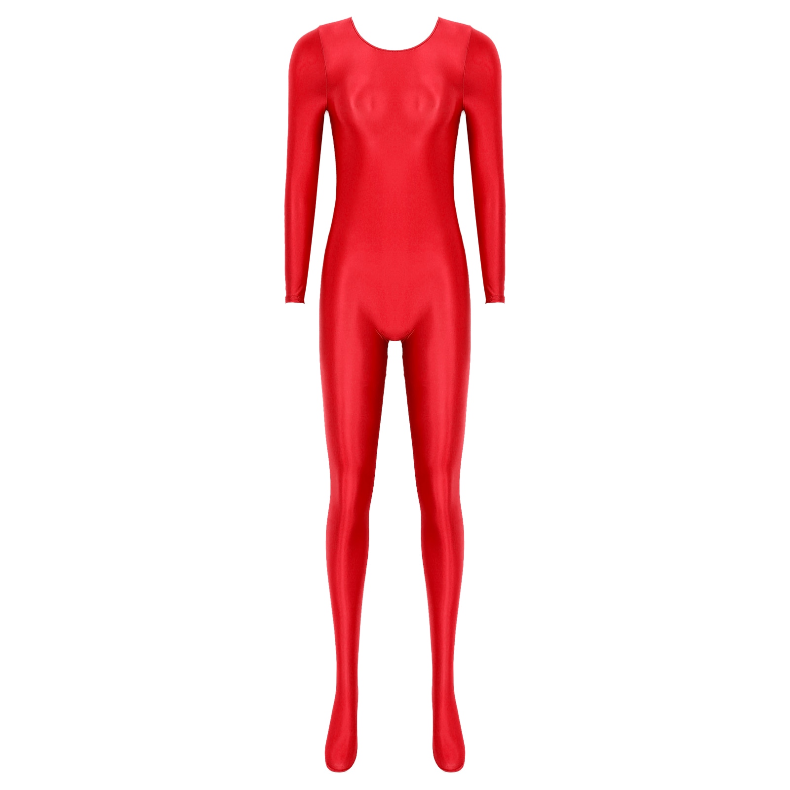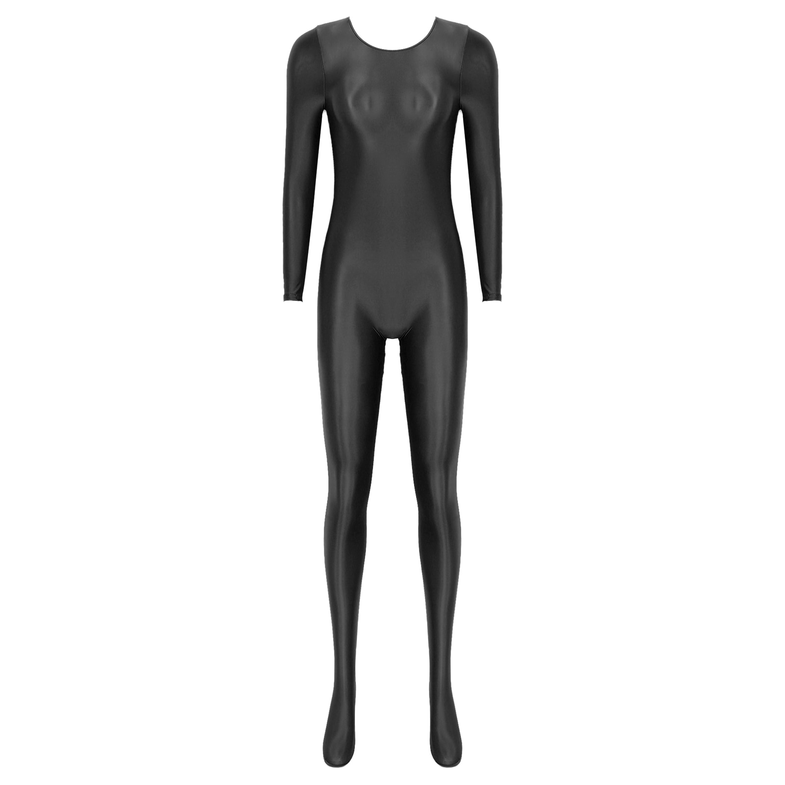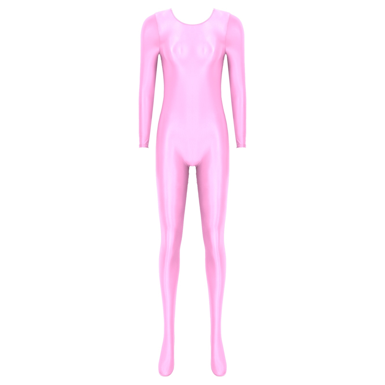 Women’s Long Sleeve Bodystocking Solid Color Round Neck Bodysuit.