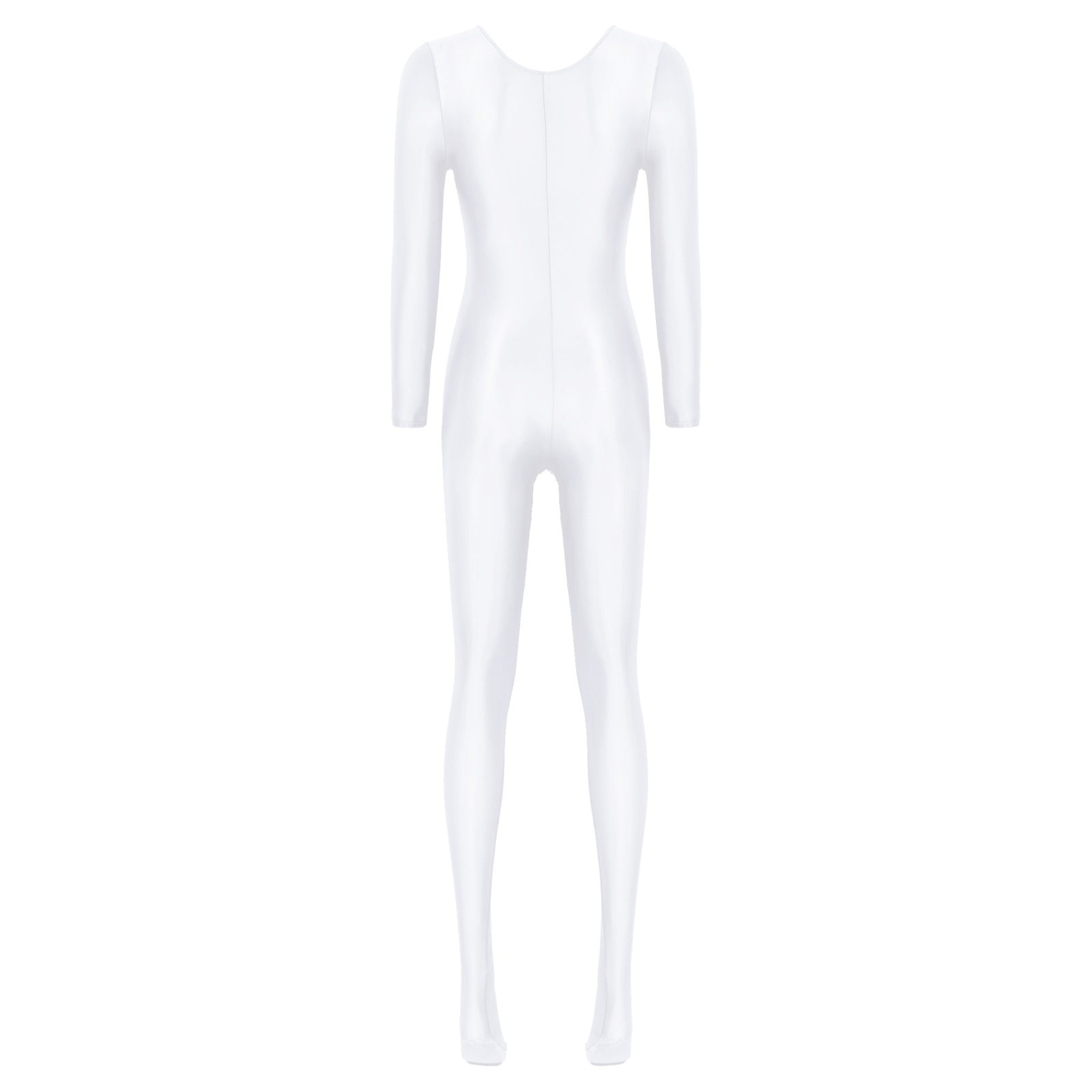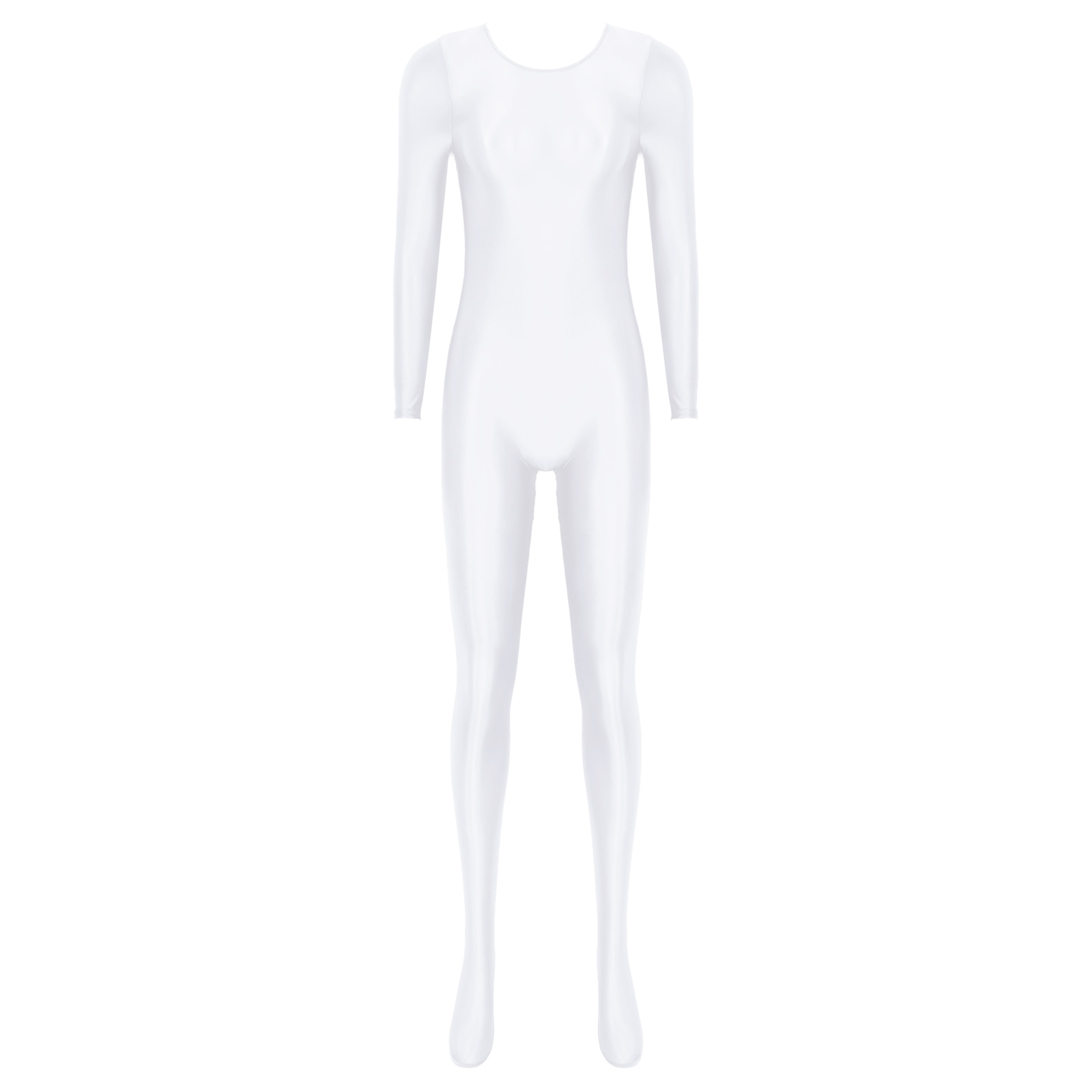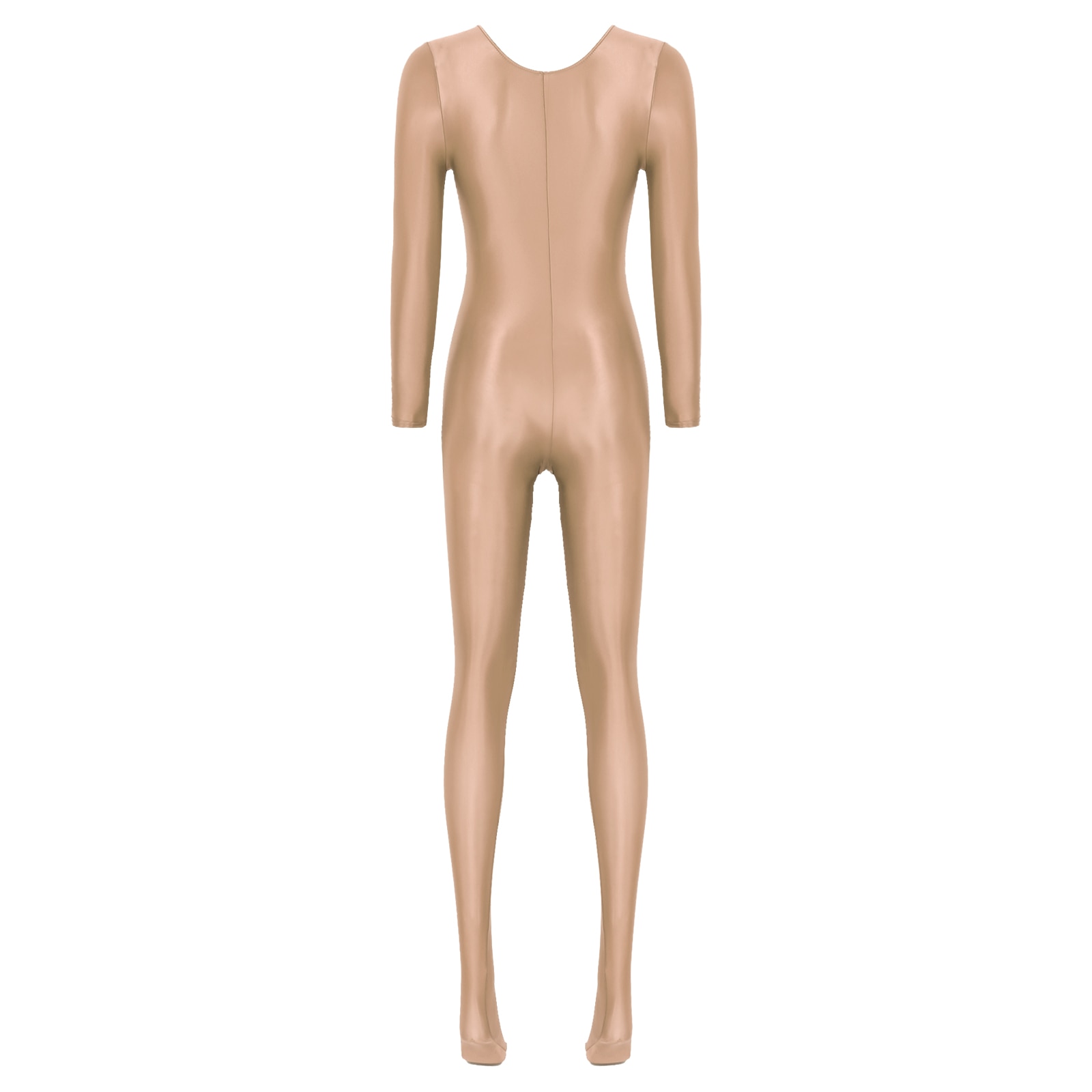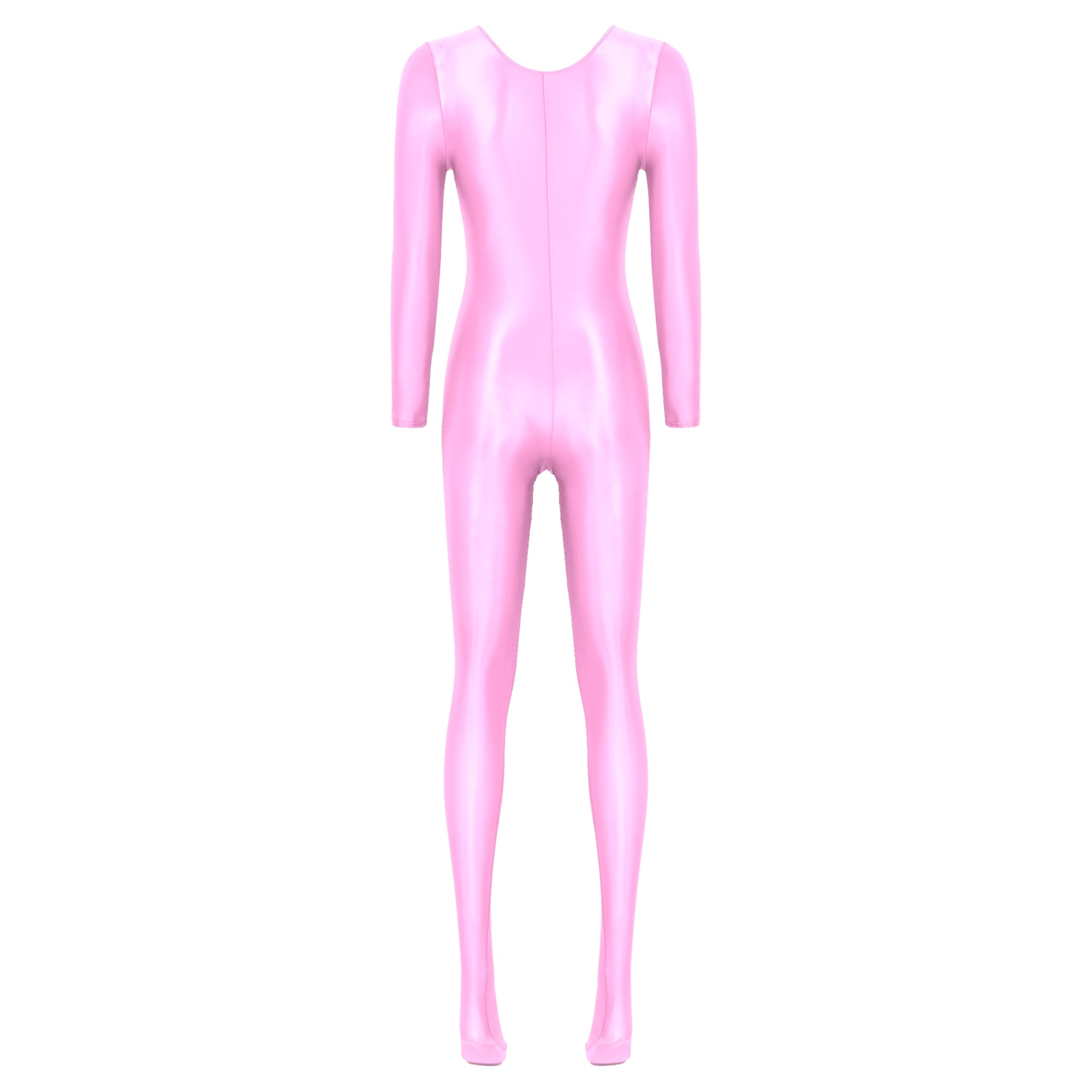 Women’s Long Sleeve Bodystocking Solid Color Round Neck Bodysuit.