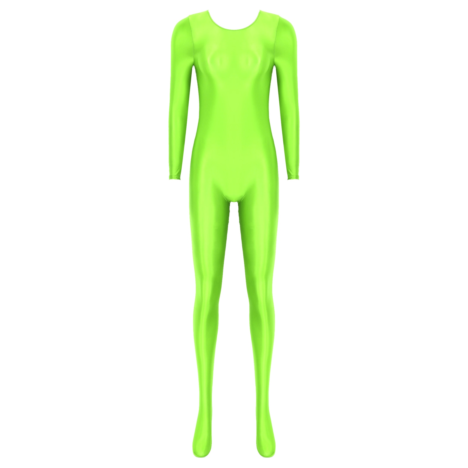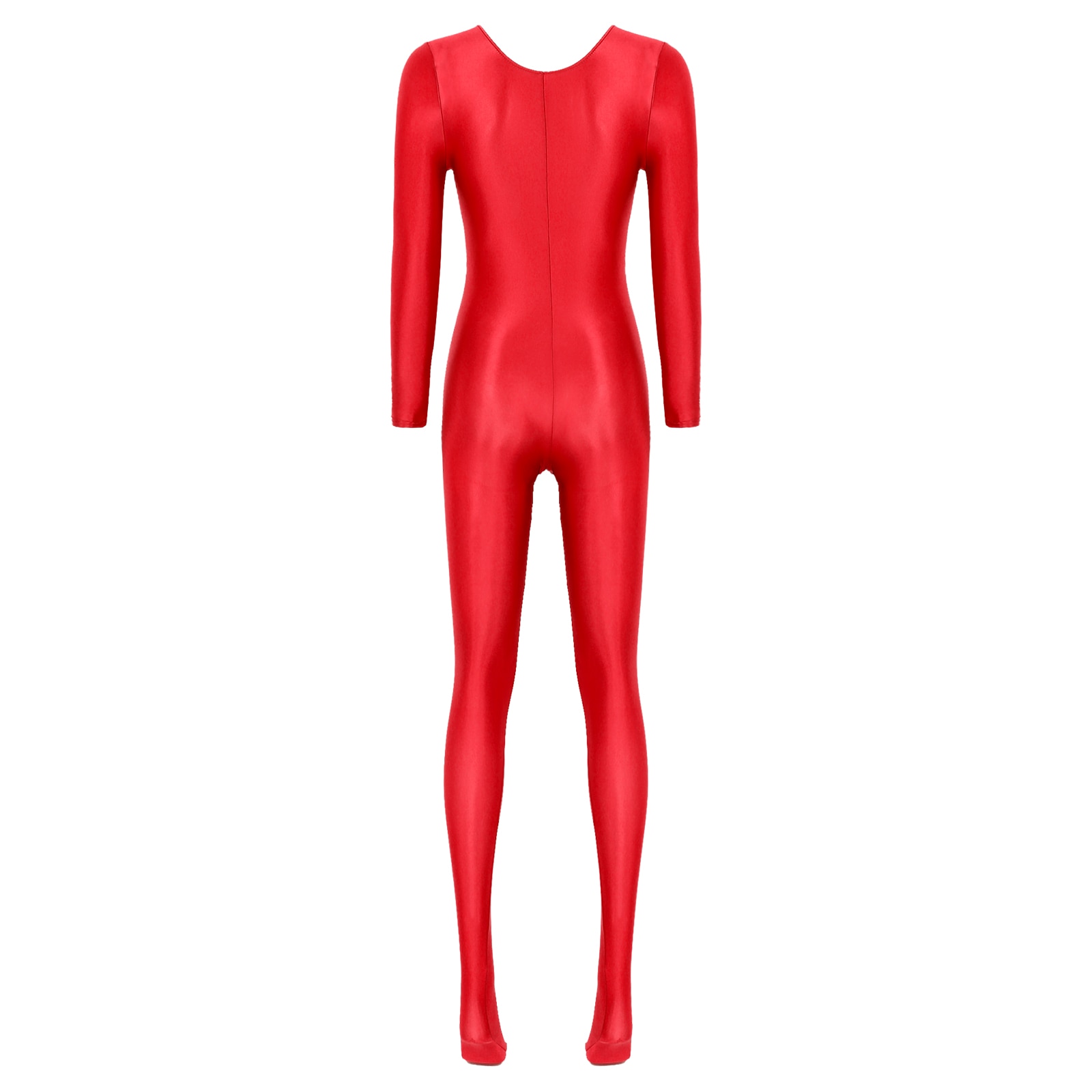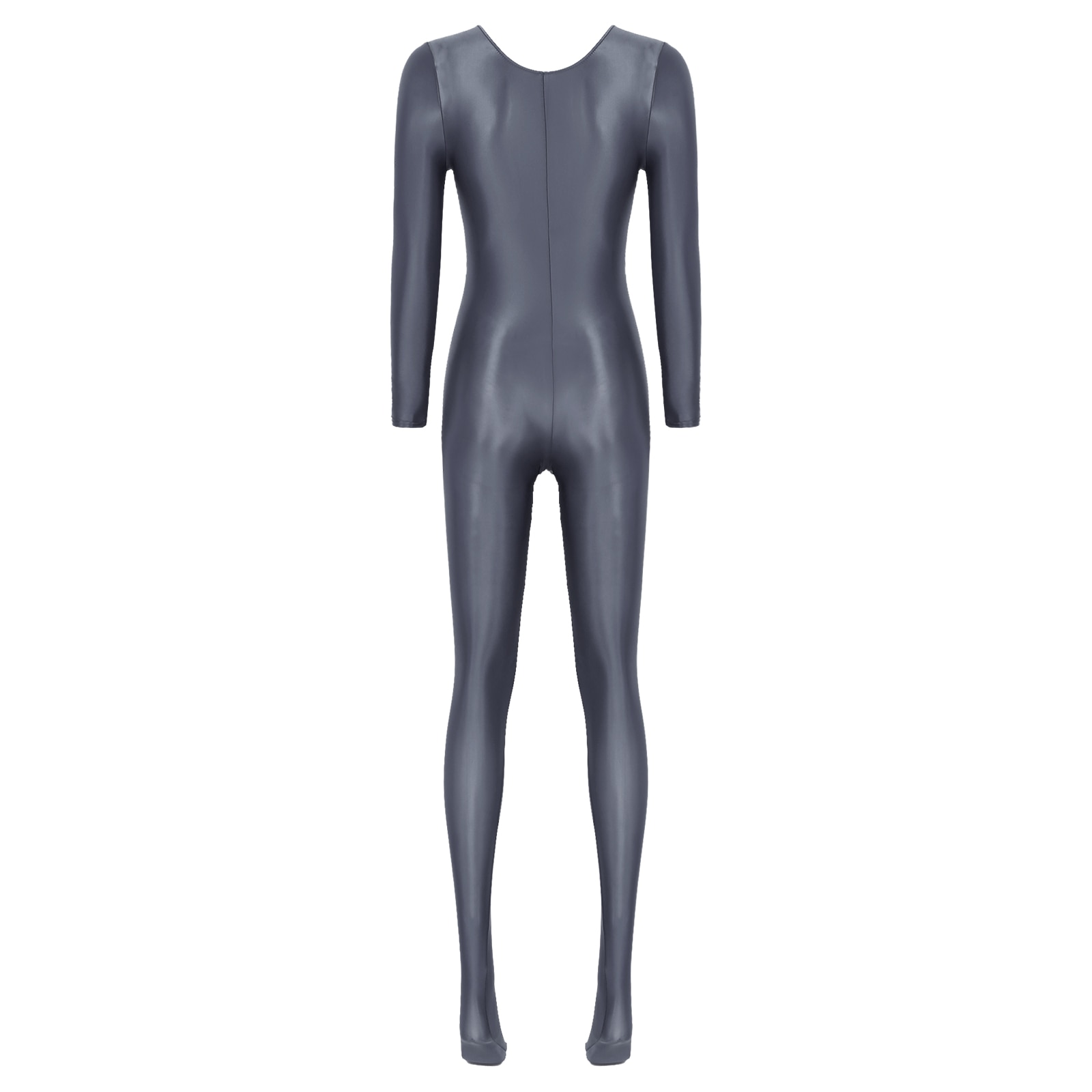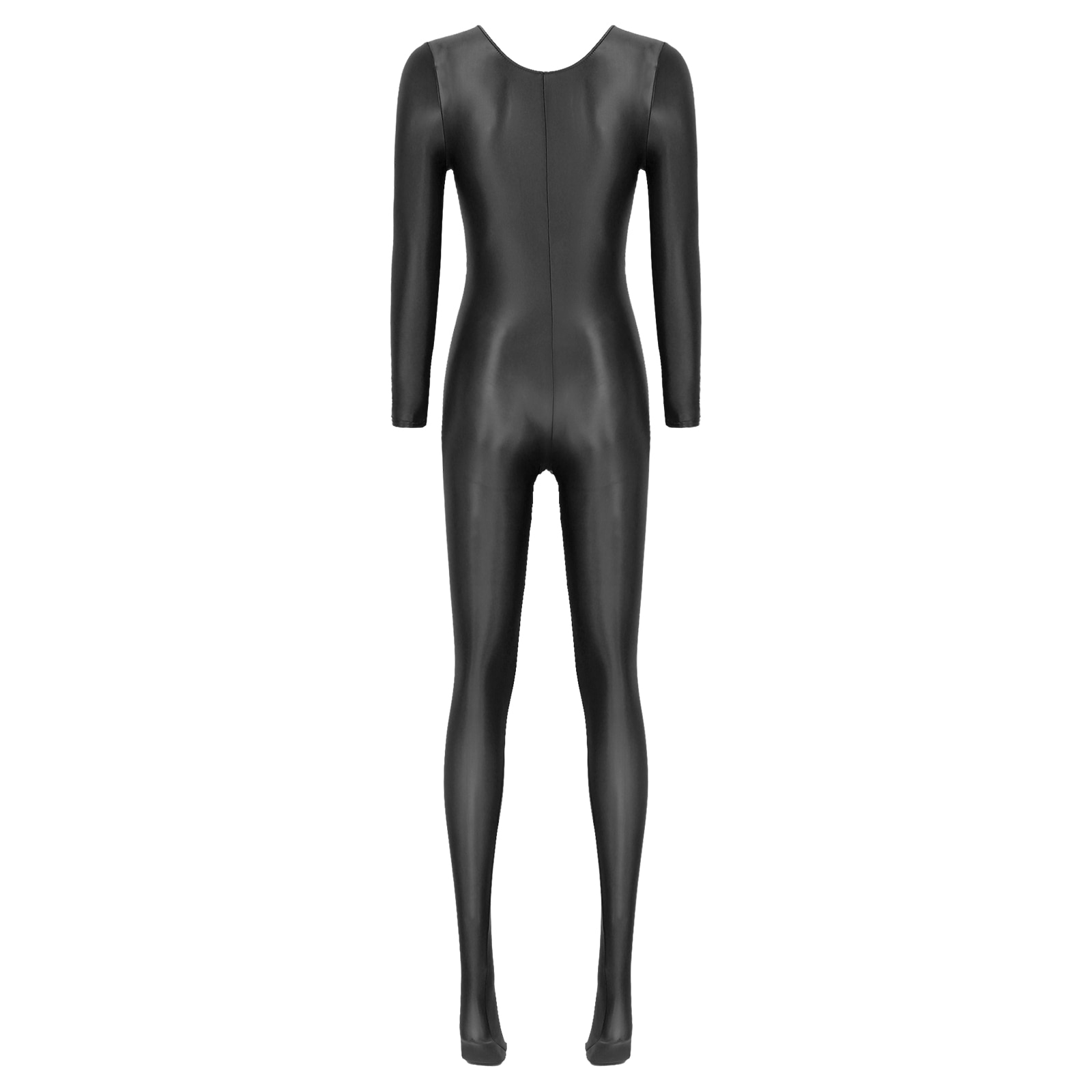 Women’s Long Sleeve Bodystocking Solid Color Round Neck Bodysuit.