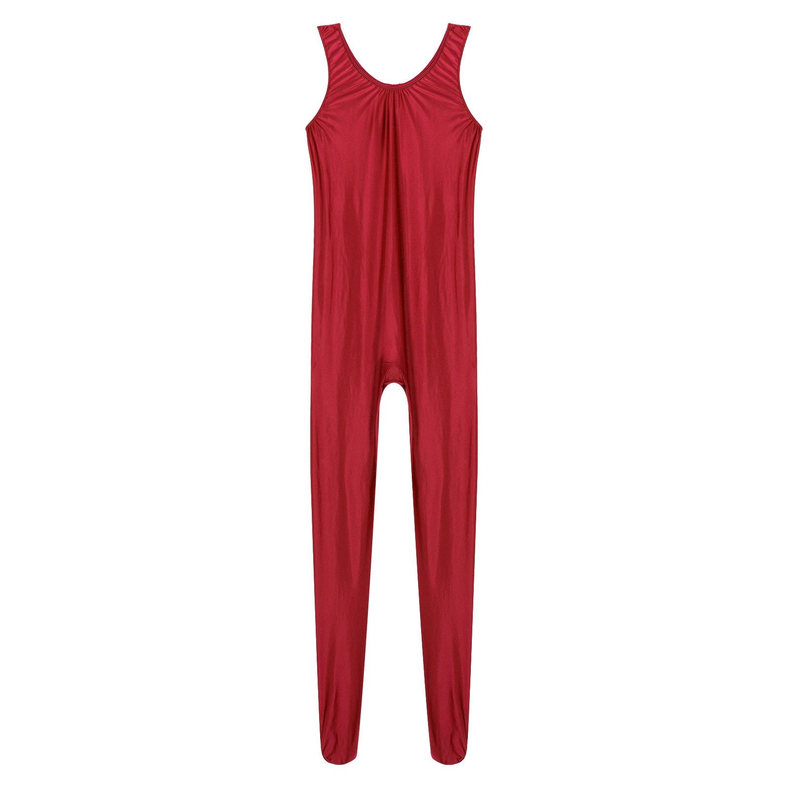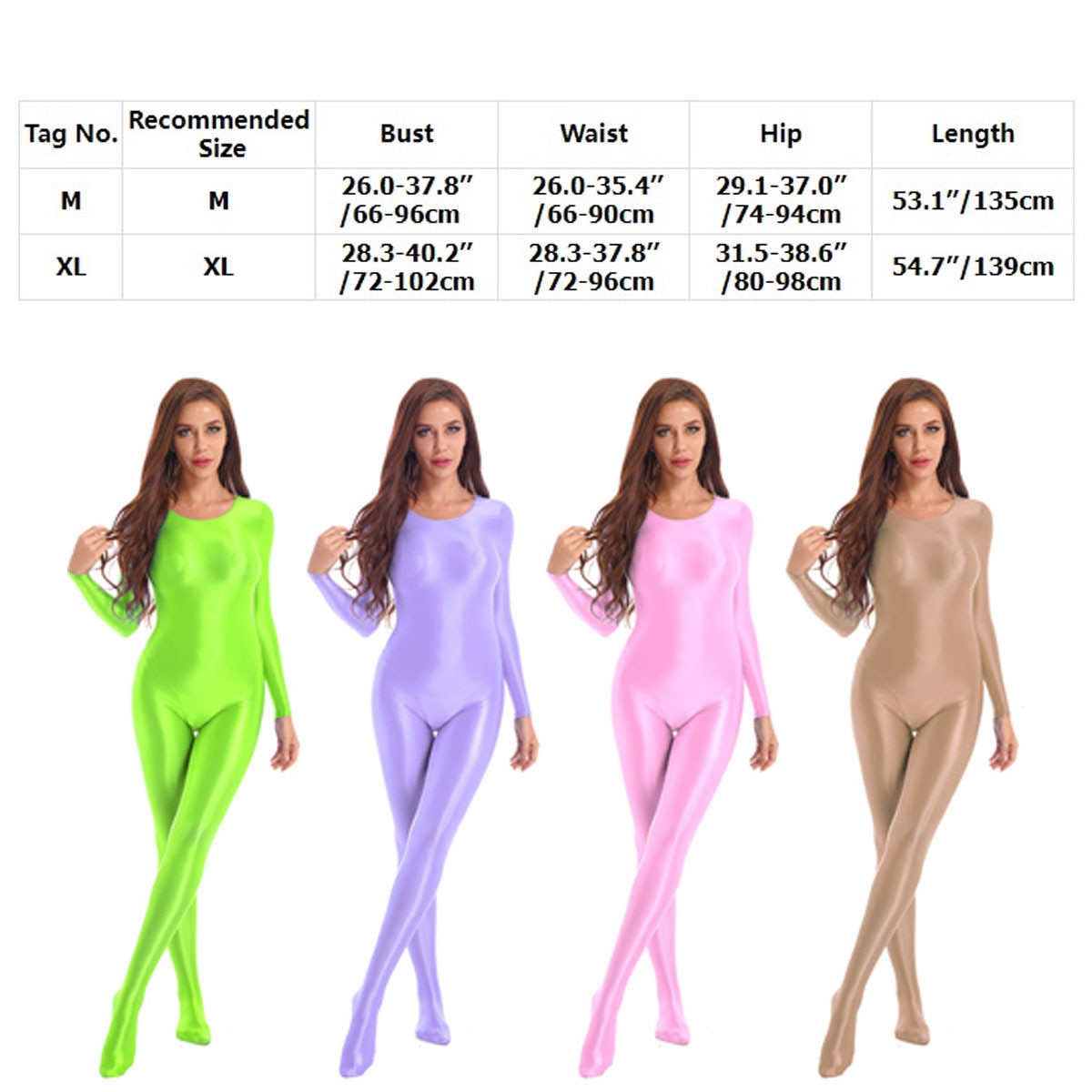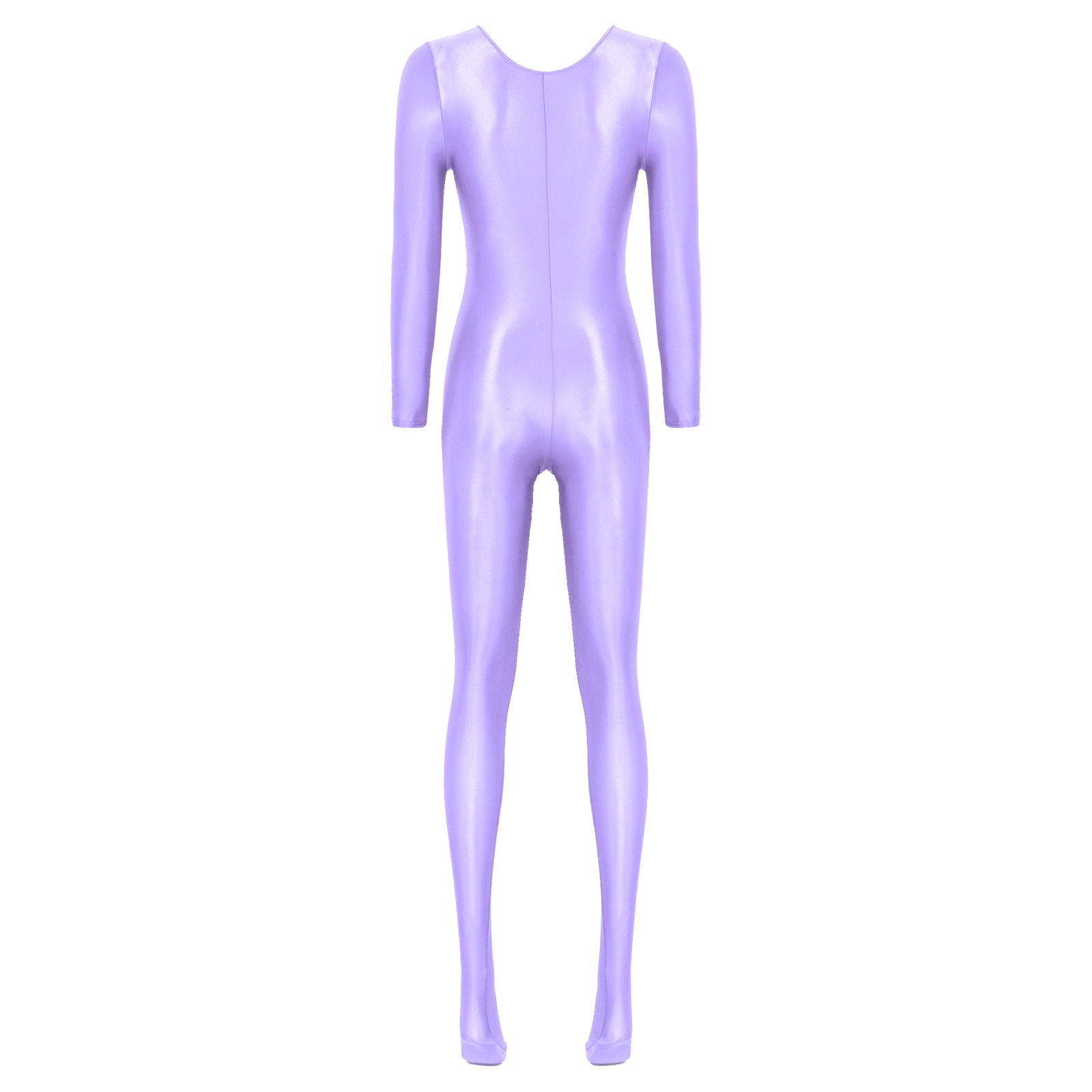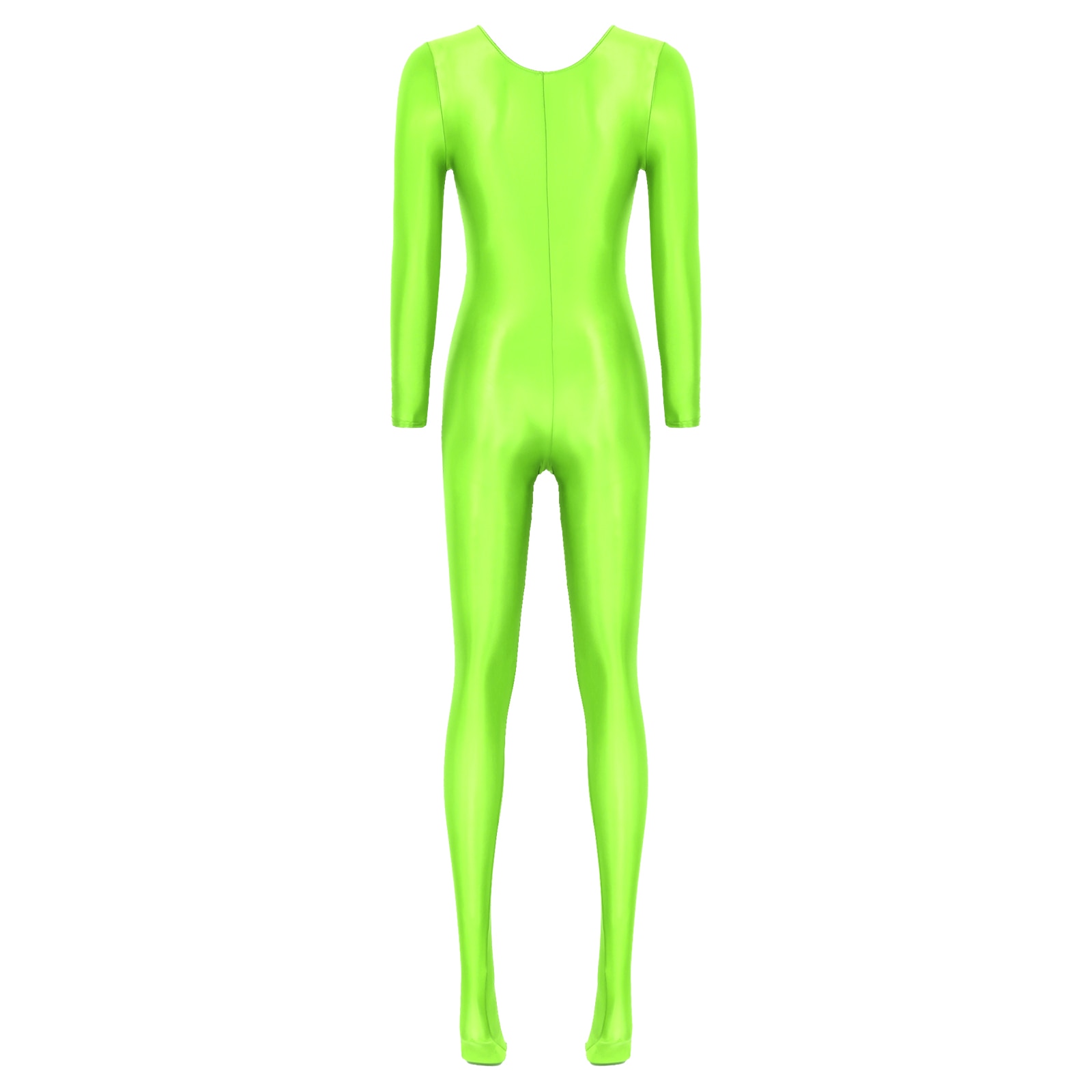 Women’s Long Sleeve Bodystocking Solid Color Round Neck Bodysuit.